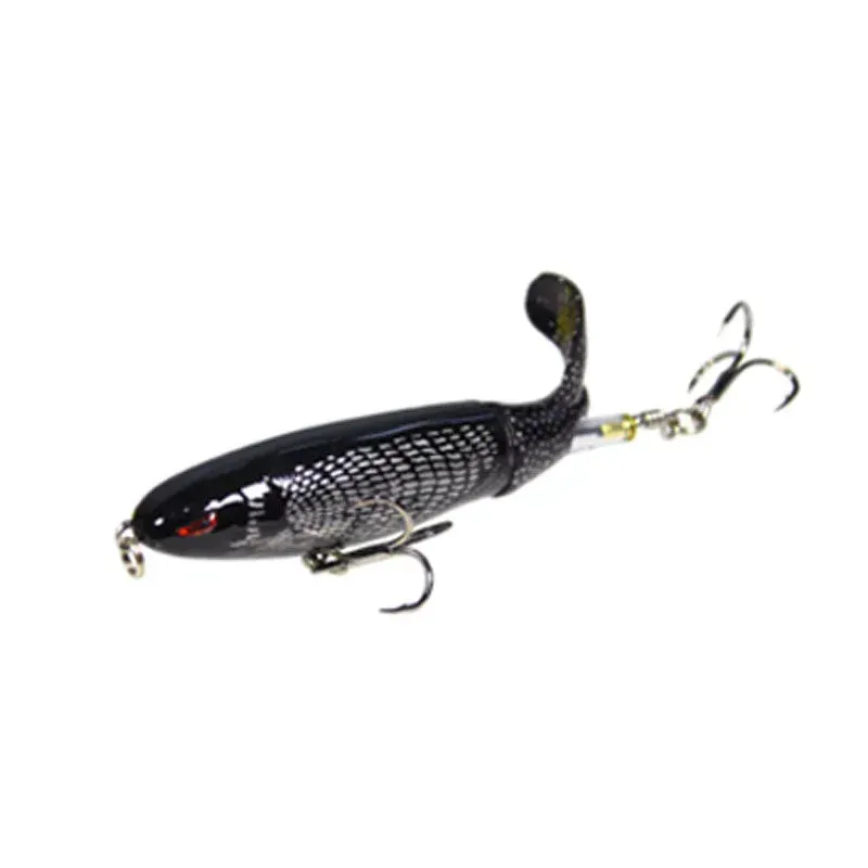 - 🐠【Topwater Blow Up】The unique action of Topwater bait can summon schools of fish from a distance, which can cause an explosive blow every time. The spinning tail spins and snaps and splashes as you retract the bait quickly and steadily, no bass can resist taking a bite.