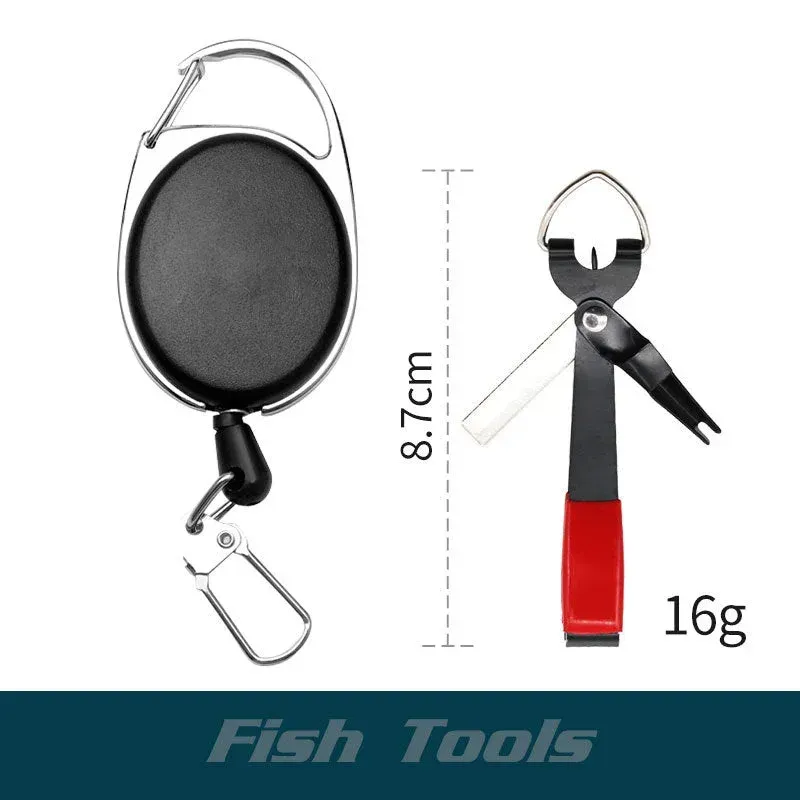 Equipped with oval retractor for fishing tool holder, built-in stainless steel spring and 600mm/24" nylon cord, 1.5oz retraction force. Easily attaches to flight vests, waists, backpacks, tackle bags and more.